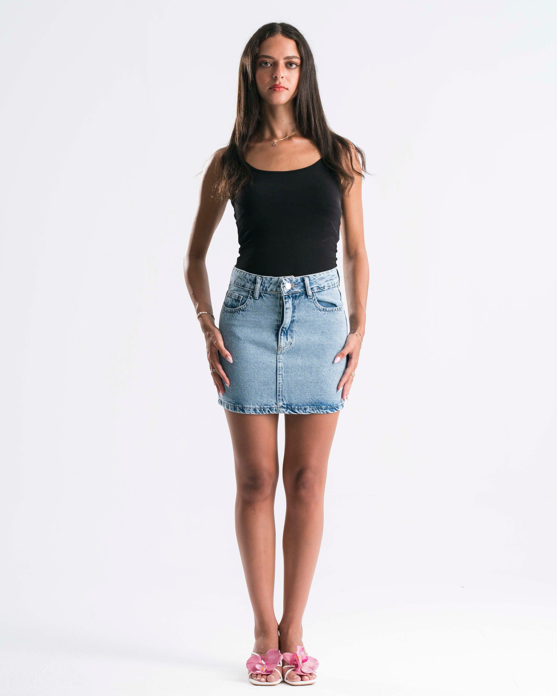 No fuss, all attitude — your go-to denim mini.